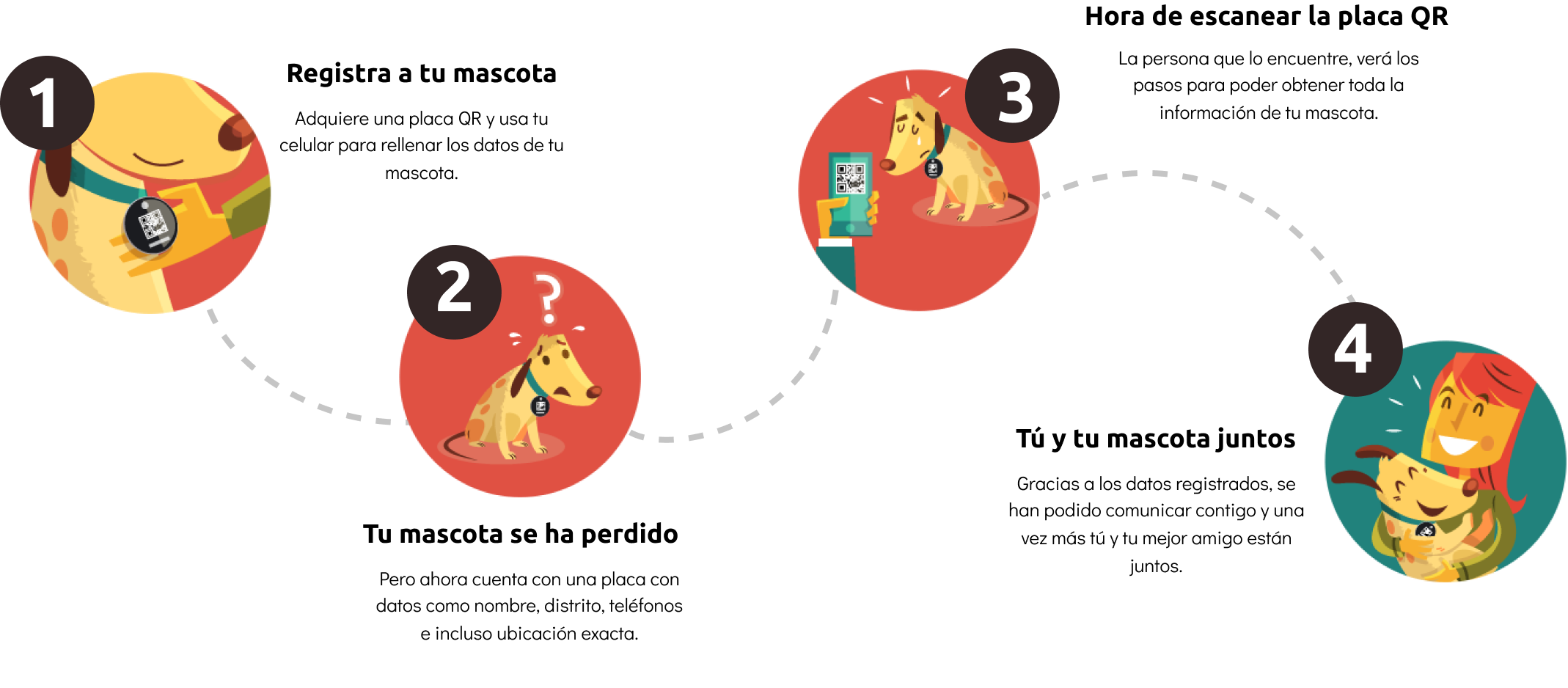 Si encuentras una mascota sola con una placa QR, escanea la placa con tu celular, mira el número de contacto y comunícate con el dueño! Es rápido y estarás ayudando a que la mascota regrese sana a su familia.